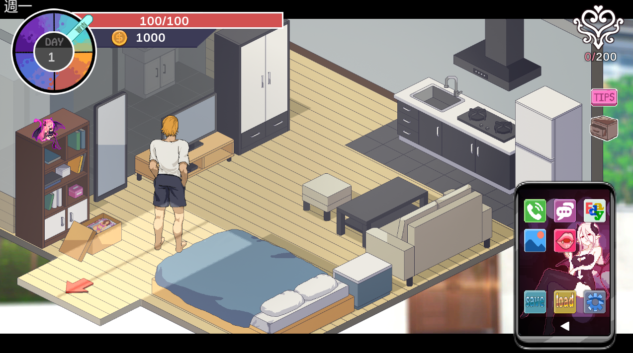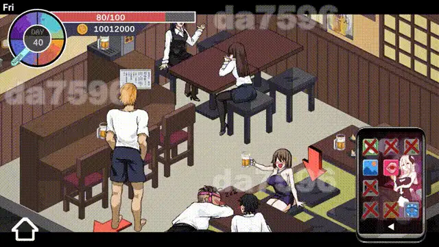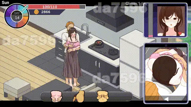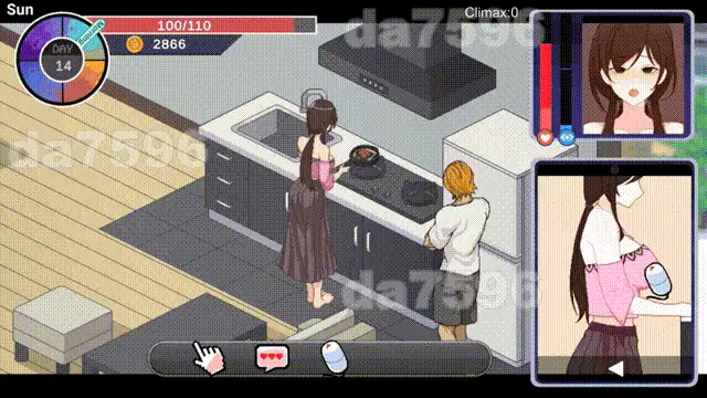 游戏每天分为早上、下午、晚上、午夜四个时段,每个时段可选择不同行动,如打工赚钱、与女主角互动、购买道具等。